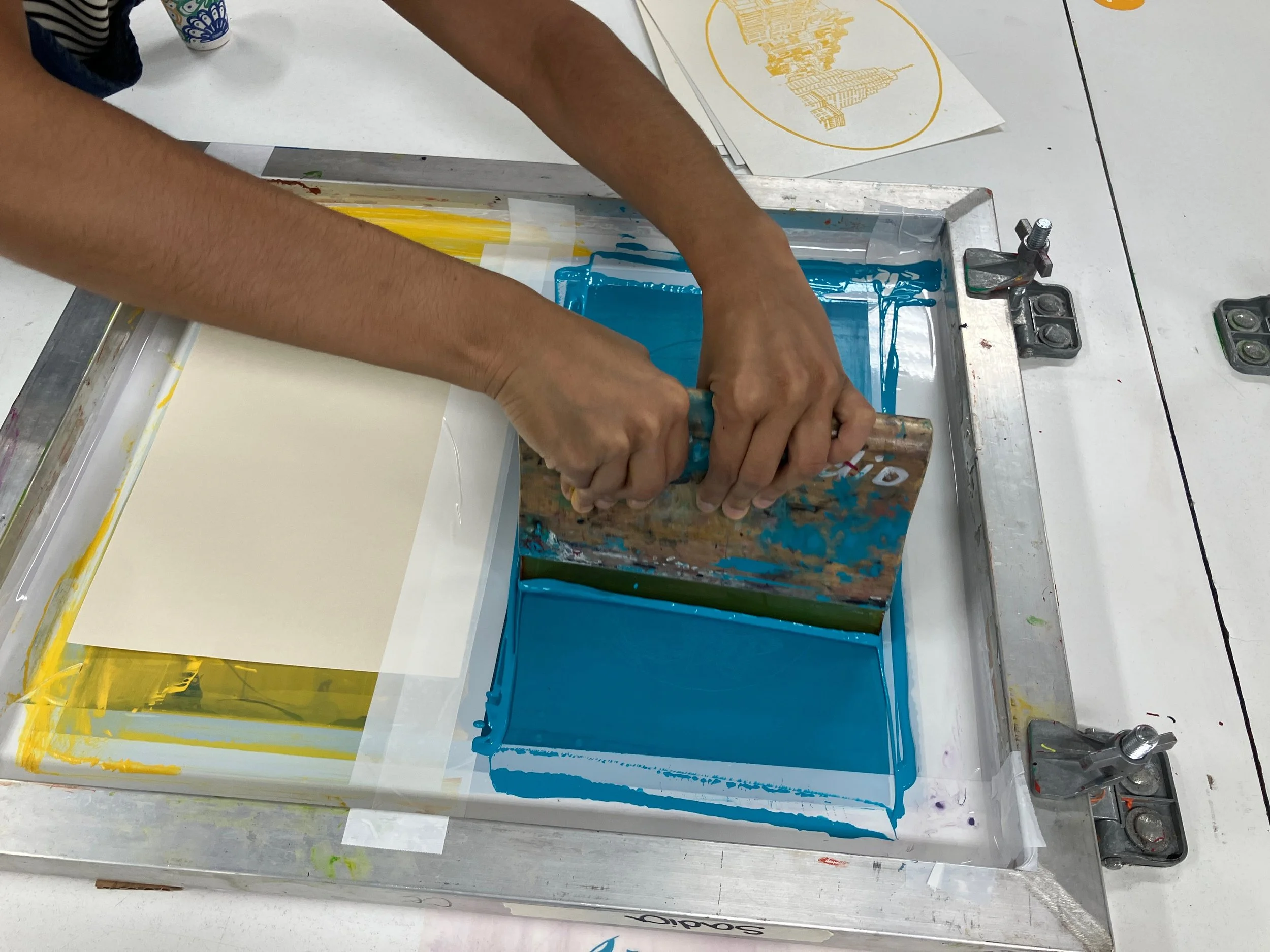 Learn and practice the art of screen printing on paper using methods ranging from hand-painted stencils to photo emulsion exposures. In this 6-week class, we’ll play with color and design while trying out screen-making methods like paper stencils, drawing fluid, screen filler, and photo emulsion. Students will create a series of single and multi-colored edition prints on paper while investigating their own interests, ideas, and images through the printing process.
