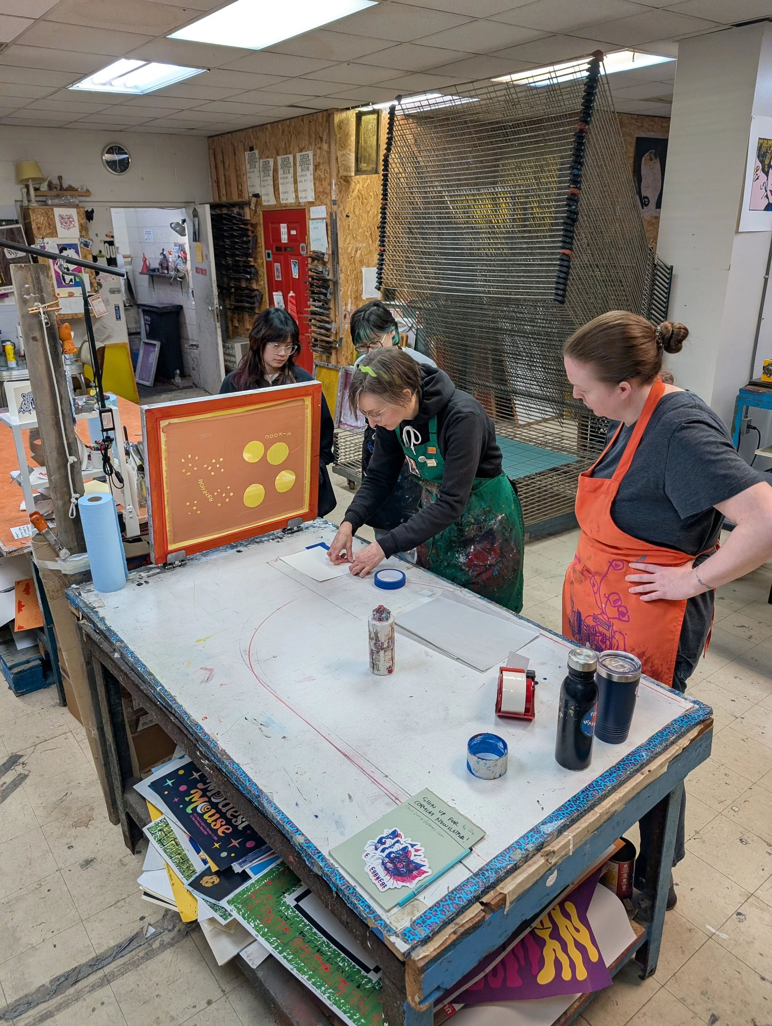This hands-on workshop introduces the full screen printing process on paper, from start to finish. As a group, students will collaborate to design a two-color poster, then print it together while learning each step of the process. Each student will contribute a unique element to a pre-made design, simplifying the creative process and allowing the class to focus on mastering printing techniques in a fun, low-pressure setting. Whether you’re building a foundation in screen printing or simply trying something new, this workshop is perfect for beginners or anyone looking to refresh their skills. You’ll leave with a custom two-color poster unique to your class and a solid understanding of screen printing basics.